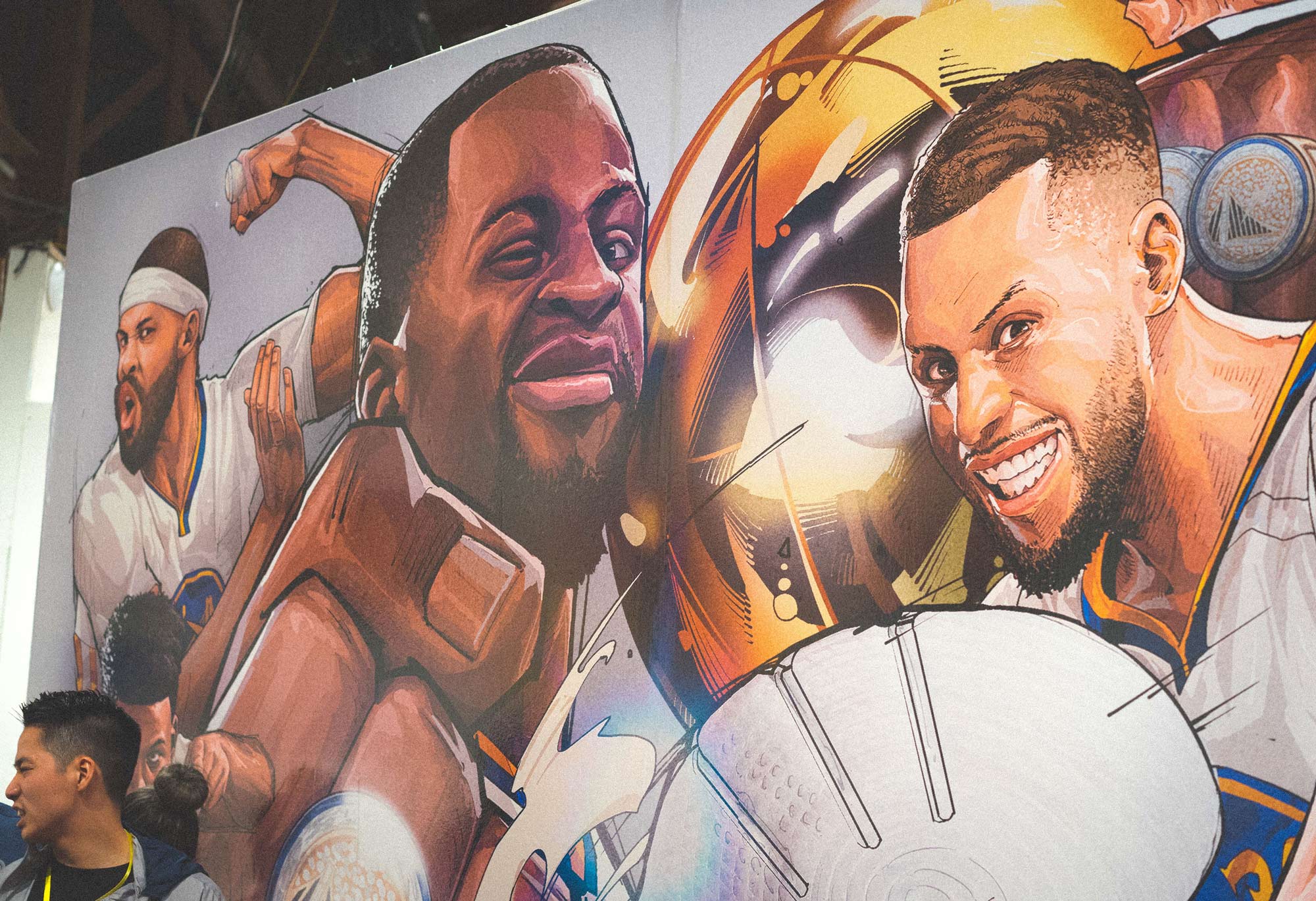 Dubz Against the World represented one of the first moments where the Posterizes ecosystem and the broader basketball art movement fully stepped into the physical world at scale. Held at the SOMArts Cultural Center in San Francisco, the exhibition brought together more than 30 artists to celebrate the Golden State Warriors during one of the most electrifying dynastic runs in modern NBA history. The 20,000 square foot venue transformed into a playground for Dub Nation, combining gallery installations with music, sneakers, arcade games, highlight reels, and food trucks that kept the atmosphere closer to a cultural festival than a traditional art show.