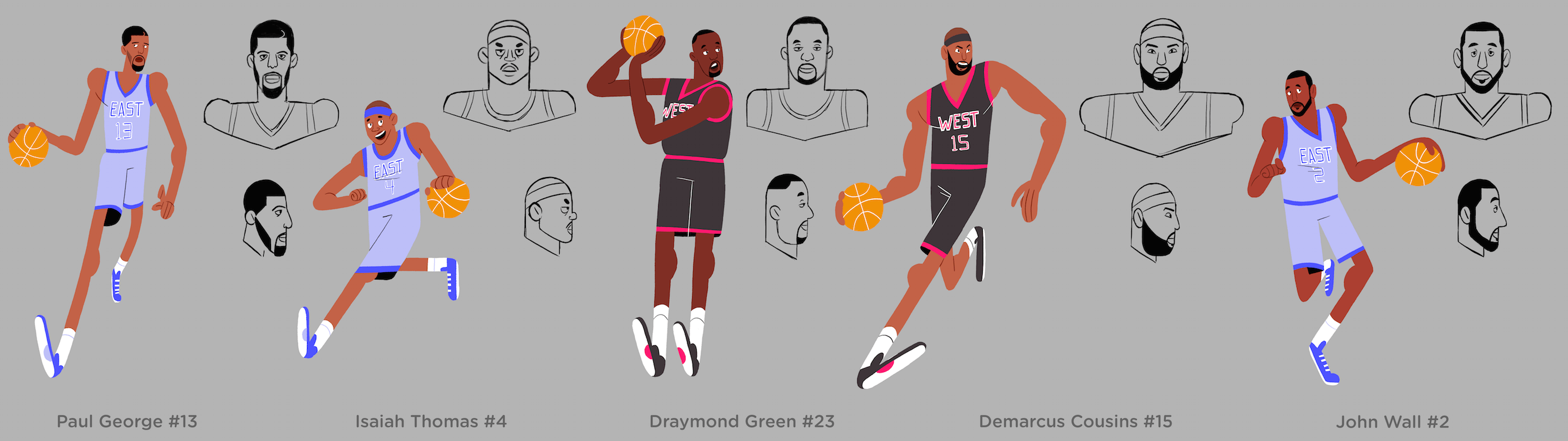 This meant that everyone got a chance to contribute their unique flavor to concepts and help shape it as we went through the creative process. For instance, the below Kevin Durant x Kanye West Famous illustration that we created for his free agency decision began originally as a photoshop idea of a screencap of the image from the music video, and then over time evolved to an illustration when we realized we wanted to include mascots and other icons.