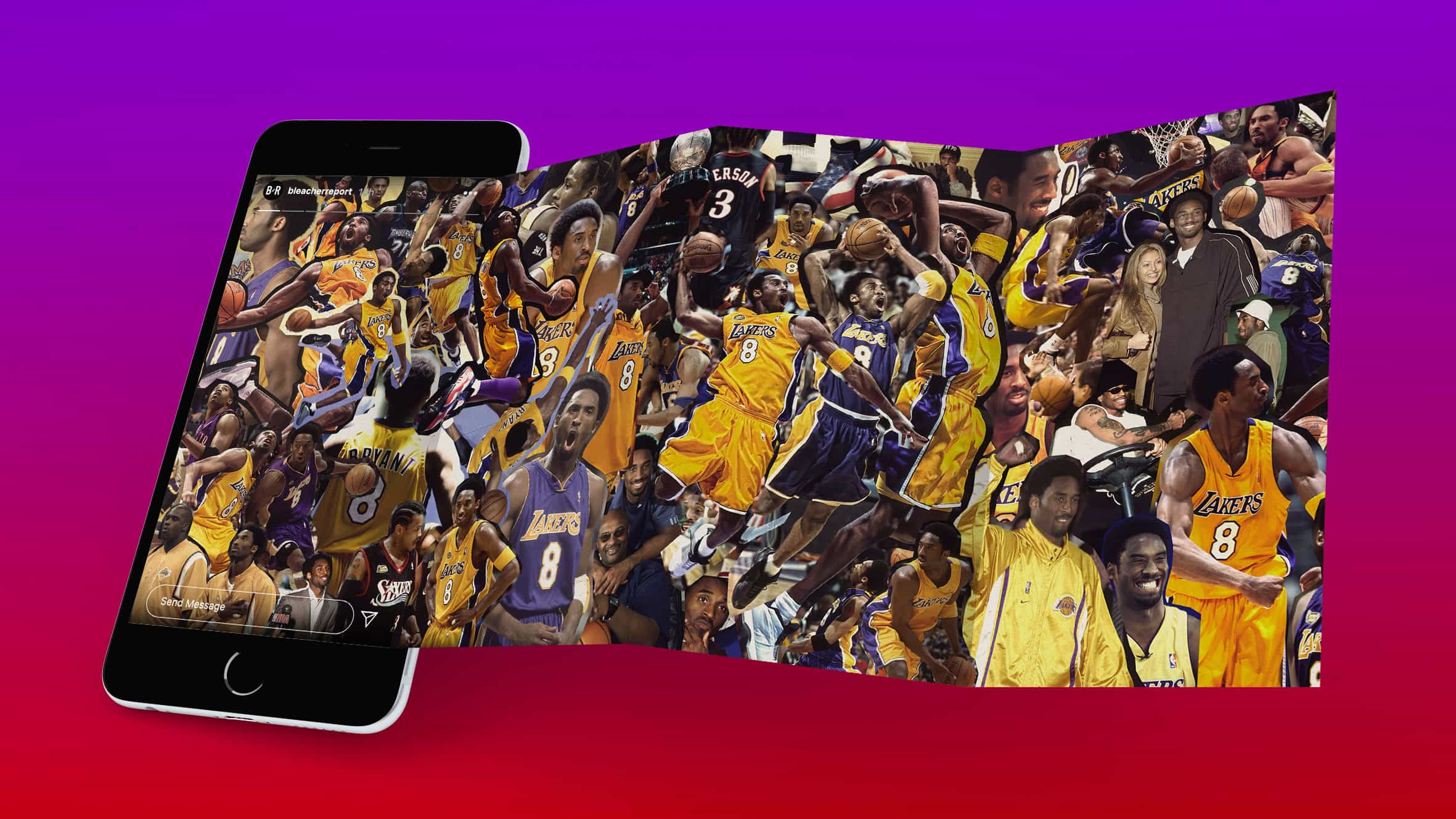 Pushing the limits of these platforms was a common theme in any of the ideas that I helped bring to publish, and one of my favorite examples of that isa project that Bennett Spector, the Senior Vice President of Social and Programming at Bleacher Report called a perfect example of amazing storytelling meeting innovative packaging that broke our engagement records and was an example of what it means to create truly disruptive content. I am referring of course to my over 100,000 pixel collage that I built out researching, identifying, and using over 76,400 images from Kobe's career both on and off the court to tell a compelling visual story that encompassed his whole identity and impact of his career. Inspired by the likes of traditional long intricate tapestries like the iconic one at Bayeux, this was essentially a version of a digital tapestry, one that pushed the platform of instagram stories to the absolute limit.