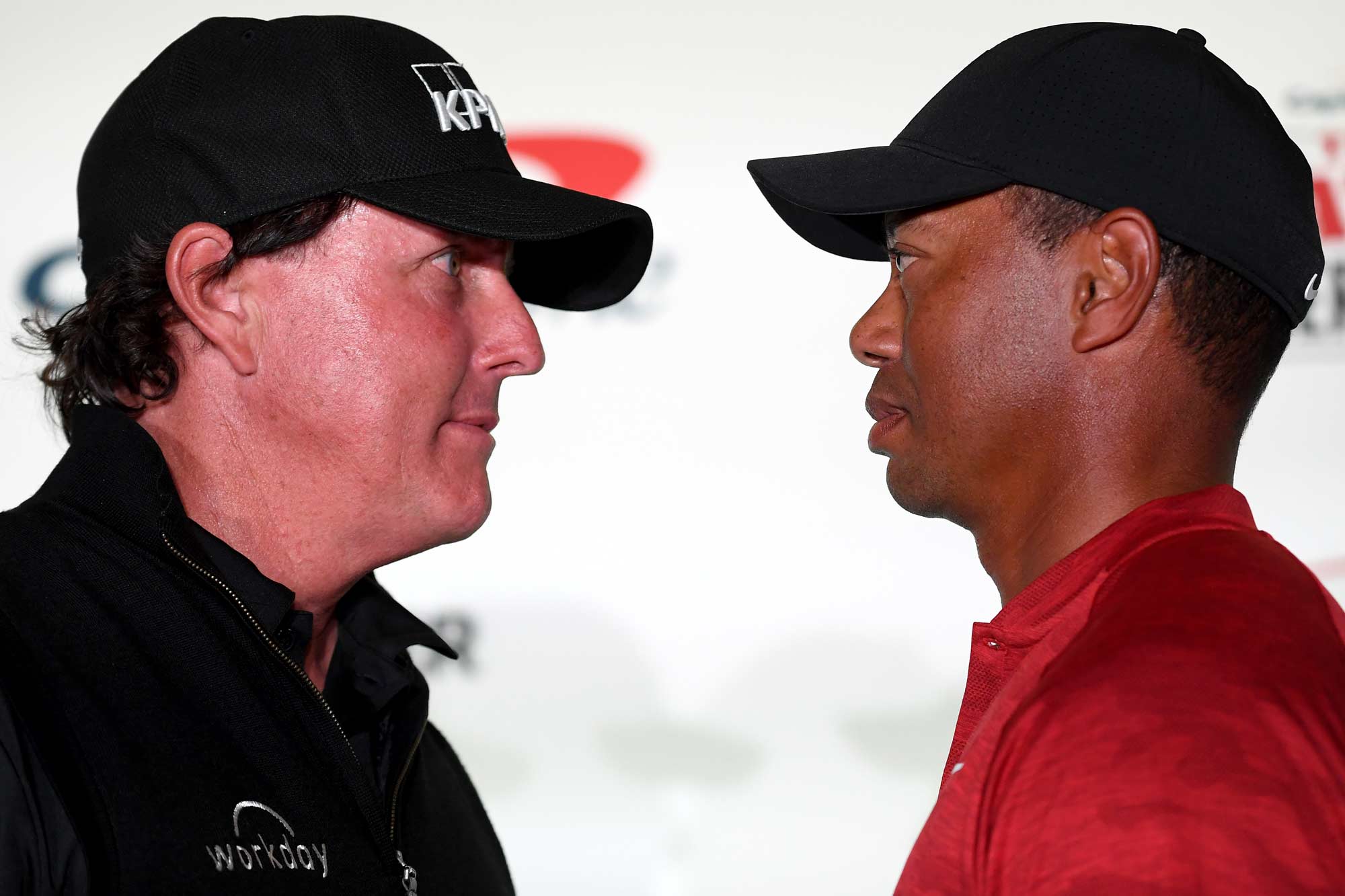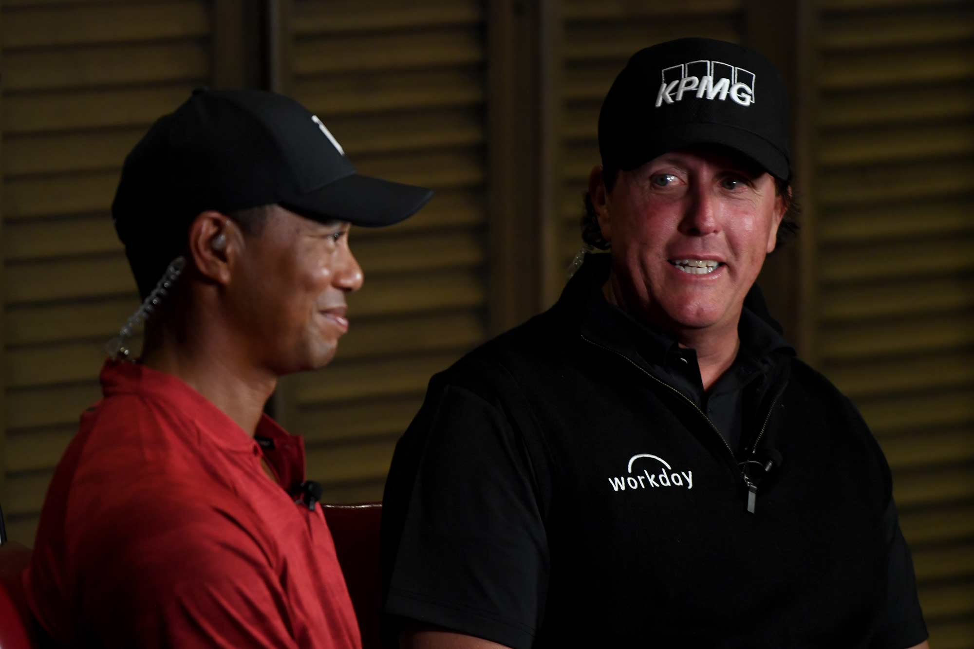 One of the more theatrical promotional moments leading into the event came in the form of a staged press conference and face off between Woods and Mickelson. Borrowing visual cues from boxing promotions and championship fight nights, the production framed the appearance less like a routine golf media day and more like a ceremonial confrontation between rivals. The players were positioned side by side in front of cameras, photographers, and assembled media as they addressed questions about the match while subtly engaging in playful verbal jabs. The staging reinforced the idea that this was not simply another exhibition round but a high stakes duel between two of the sport’s defining figures whose names had been heard by so many sports fans across the years.