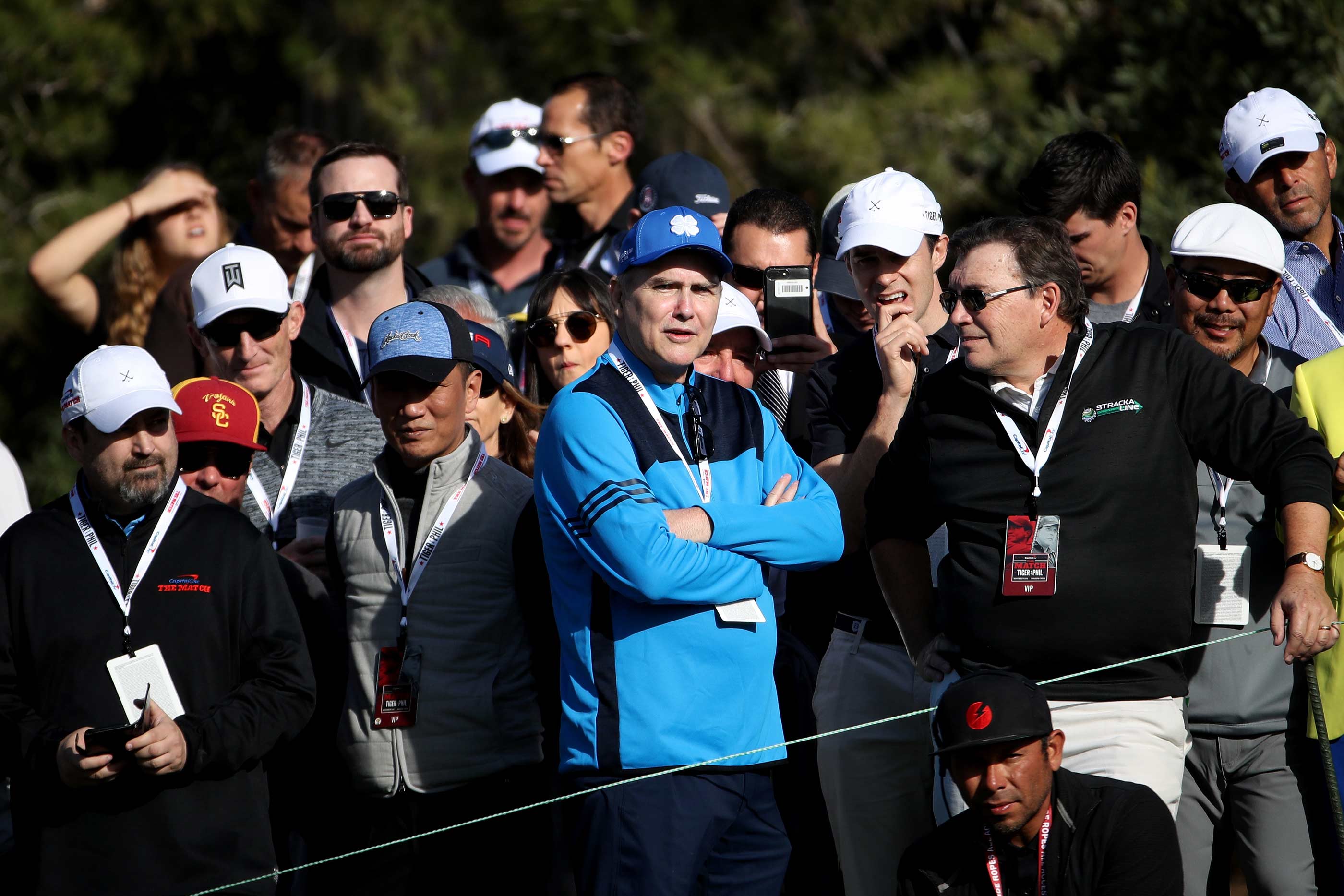 The seventh hole marked a point where the competitive instincts of both players became more visible. Even though the event carried an entertainment tone, neither golfer appeared interested in treating it as a casual exhibition. Woods’ trademark focus began to show through his deliberate preparation before each shot. Mickelson responded with the aggressive shot making that had defined his career for decades. The balance between entertainment and genuine competition started to shift toward the latter. Viewers could sense that both players wanted the bragging rights that would come with winning the match. The rivalry that had lived in the background of golf for years was now unfolding hole by hole. I also just want to take the time to give comedy legend Norm Macdonald rest his soul who was in the crowd his flowers at this moment.
