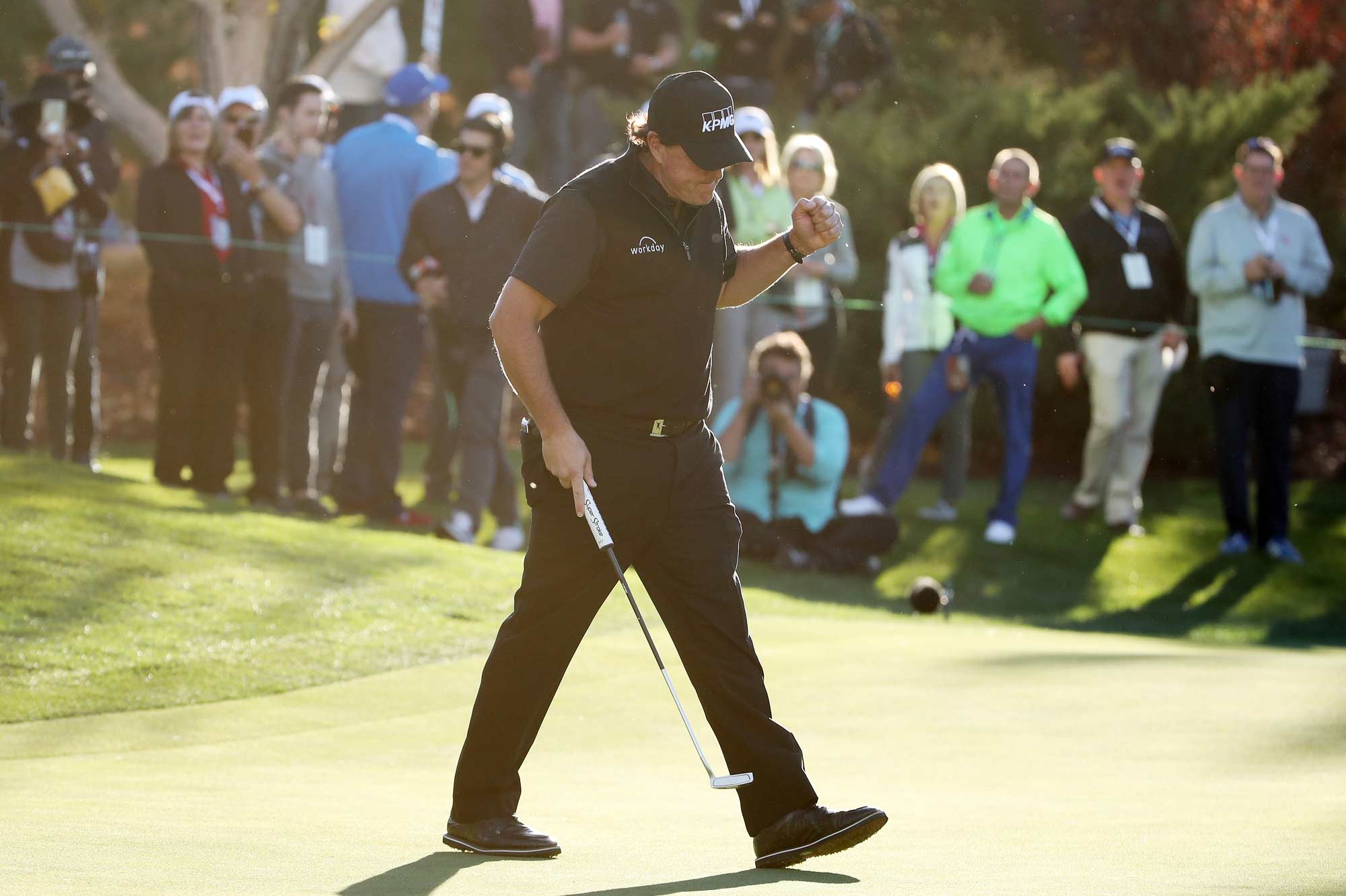 On the fourth trip to the short playoff hole Mickelson finally delivered the decisive moment. Woods had an eight foot birdie attempt that narrowly missed, leaving the door open for his longtime rival. Phil calmly lined up a putt from just inside four feet and rolled it into the center of the cup. After more than five hours of play the match was decided with a simple stroke that carried nine million dollars in prize money. Mickelson celebrated the victory with a mix of relief and humor, acknowledging that opportunities to claim bragging rights over Tiger Woods had been rare throughout their careers. The match officially concluded after twenty two holes with Phil emerging as the winner.