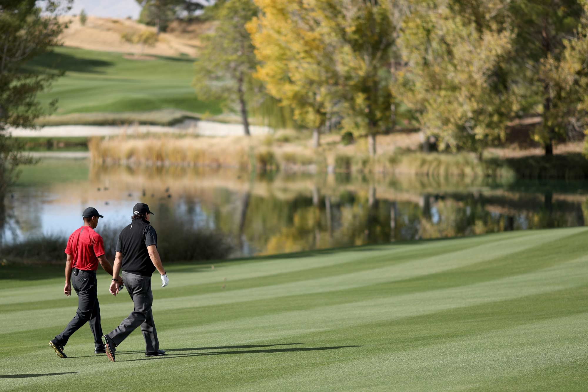 The sixteenth hole highlighted how demanding the layout of Shadow Creek could be late in a round. Precision became increasingly important as both players tried to avoid unnecessary mistakes. Woods leaned on his experience and control while Mickelson relied on feel and creativity. Their contrasting styles created a compelling rhythm as the hole unfolded. The cameras followed the ball flights closely and captured the reactions that followed each shot. The match remained competitive and unpredictable. It was the kind of tension that match play often produces near the end of a round.