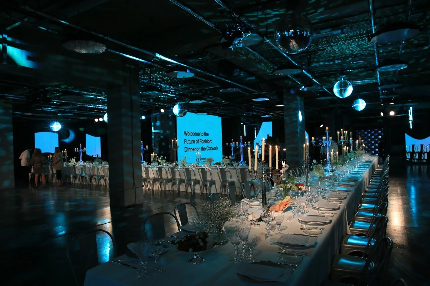 Working as design lead on these Fashion Week events was genuinely energizing because the spaces themselves were always rich with possibility. Each venue arrived with its own constraints and character, which made the challenge of transformation especially rewarding. Through lighting, spatial composition, and large-scale floral installations, we were able to reframe raw environments into expressive, fashion-forward settings that felt alive and camera-ready. The process of shaping atmosphere, guiding movement, and layering texture allowed design to operate at full scale, where every decision influenced how people felt, gathered, and created within the space.