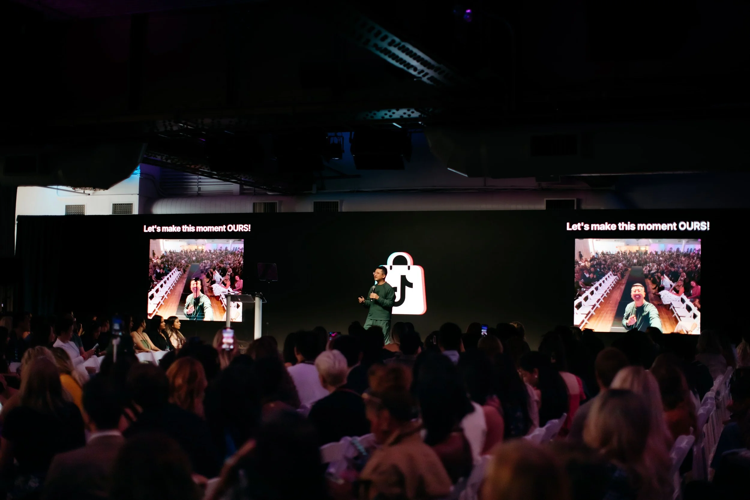 This refinement was especially critical in the stage presentations, where the brand system had to hold its own in a highly visible, content-first environment. With the updated toolkit, every element on stage, from the logo treatment and typography to the motion language and screen compositions felt intentional and elevated, allowing the brand to read clearly both in person and through the lens of live broadcast and creator content. The monochromatic approach and tighter color discipline reduced visual noise, giving the fashion, the creators, and the products space to breathe while still maintaining a strong, unmistakable TikTok Shop presence.