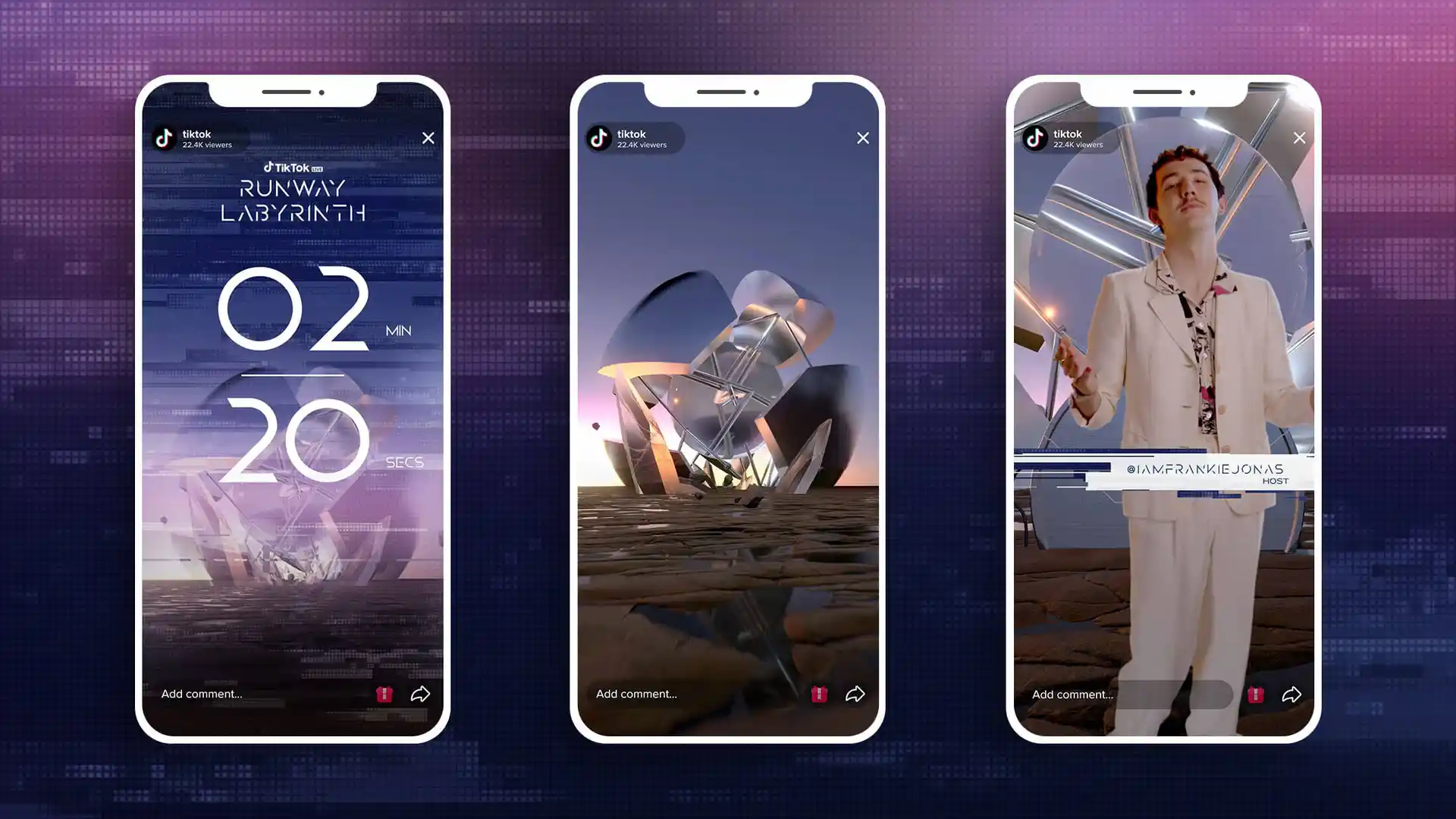 Execution took place under a condensed six-week timeline, requiring tight coordination across creative, production, and technical teams. This included sourcing and managing equipment and wardrobe, directing remote green screen shoots for all participating talent, and orchestrating live-ready assets across multiple segments. The final event featured a host appearance, three musical performances, and sixteen TikTok creators and WNBA athletes modeling collections from three designers, all composited seamlessly into the virtual worlds. Runway Labyrinth demonstrated how immersive media can transform live fashion programming into a scalable, commerce-enabled experience. By blending 3D design, motion XR, influencer coordination, and live operations, the project delivered a first-of-its-kind virtual runway that expanded what fashion shows can be in a digital-first context. The work culminated in recognition as a finalist in Immersive at the 2022 Shorty Awards, underscoring its impact and innovation for TikTok. The event reached 874,228 total unique viewers and generated 66,000 new live users, validating immersive live formats as a meaningful driver of audience growth and engagement. By combining rapid execution with high production value, the project demonstrated how TikTok can scale immersive storytelling, creator participation, and live commerce within a single cultural moment.