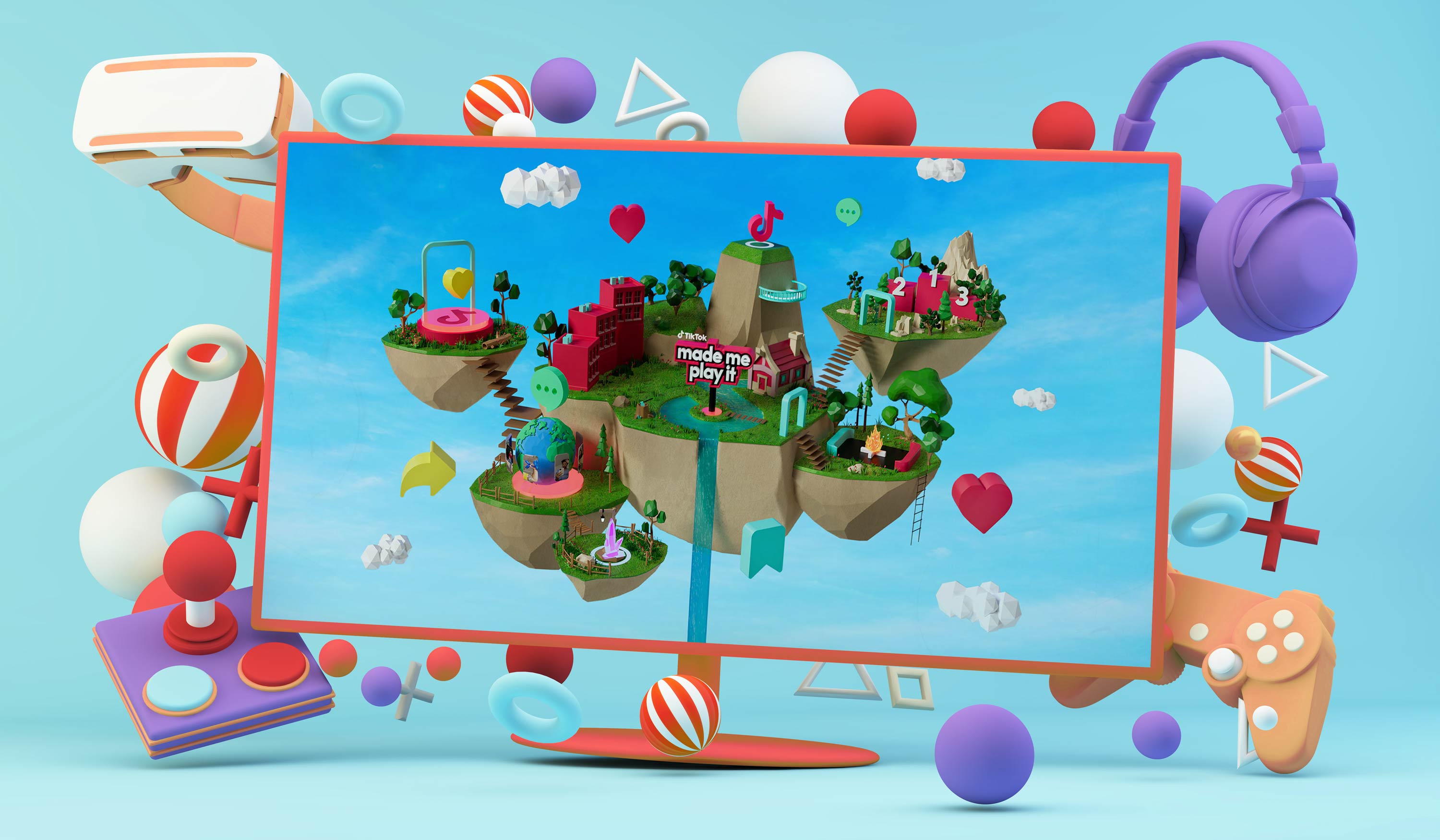 At the heart of TikTok Made Me Play It was a sprawling 3D overworld that turned the summit into a living, breathing game universe. Built as both a visual centerpiece and a navigational spine, the world drew from the wonder of iconic map screens, the progression of platform games, and the immersive logic of contemporary digital environments to create something that felt expansive, playable, and culturally fluent. Every floating island, portal, pathway, and environmental detail was designed to make the audience feel like they were entering a world of possibility rather than logging into another corporate stream. The overworld gave the entire experience its sense of spectacle and cohesion, anchoring the broadcast in a cinematic system of discovery that made TikTok’s role in gaming feel not only credible, but mythic.