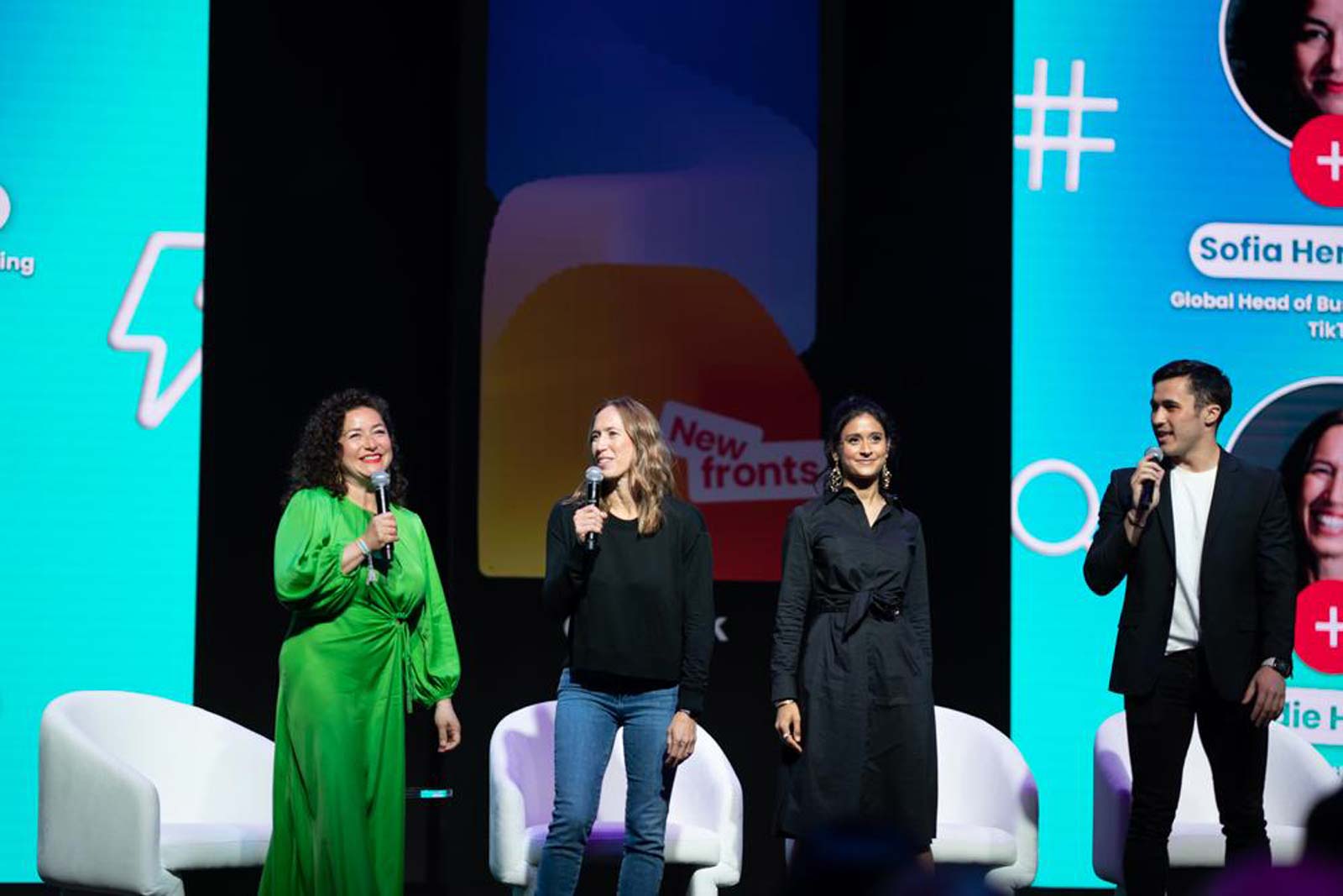When the main program began, the focus turned toward strategy and storytelling. Sofia Hernandez and Sandie Hawkins spoke on stage about how TikTok was growing into a results-driven ad platform, emphasizing measurable outcomes and the importance of creative alignment between brands and communities. The stage lighting and visuals supported the dialogue rather than competing with it, keeping the attention on the speakers while giving the room a sense of energy. The crowd leaned in, many filming or sharing live clips that extended the event’s reach beyond the room itself.