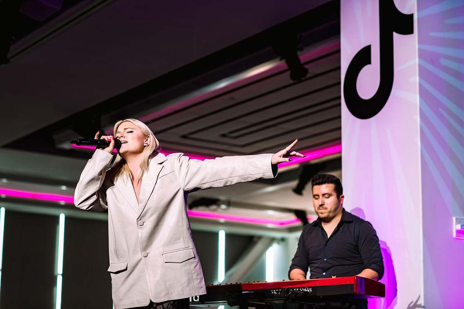 Carly Pearl didn’t so much perform as she shifted the atmosphere. The night had been full of sharp insights, controlled messaging, and measured conversation but the second she hit the mic, that structure loosened. Her voice cut through the room like a deep exhale, pulling people out of their analytical heads and into something more visceral. Backed by a crisp live arrangement, she swayed between smoky, slow-burn melodies and punchy, hook-driven moments, balancing rawness with precision, soul with sharpness. It wasn’t just a closing act it was a recalibration, a reminder that TikTok’s power isn’t just in numbers and strategy decks, but in the culture it amplifies in real time.